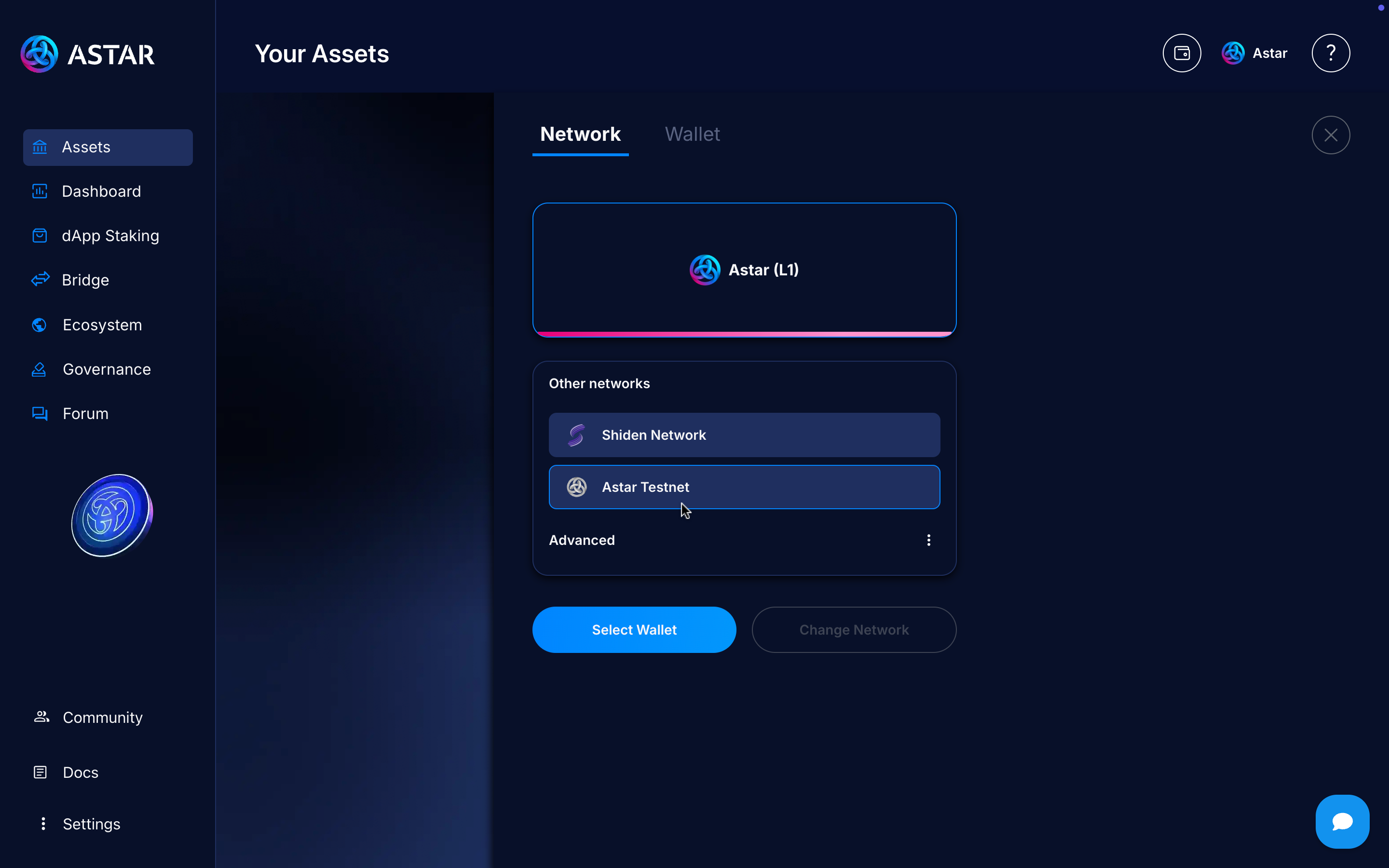 Go to our Astar Portal, the site where you can manage your funds and accounts within Astar Network.