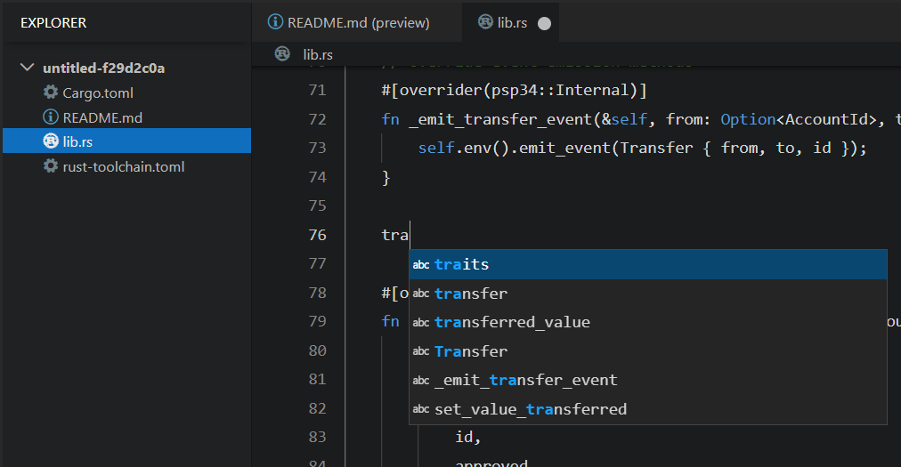 After a successful compilation, the left-hand Explorer panel will display the "target/ink" folder, and within that folder, you will find the "***.contract" file (used for deploying the contract).