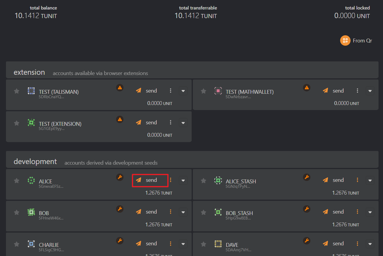 Choose an account with tokens and transfer some tokens to your own wallet.