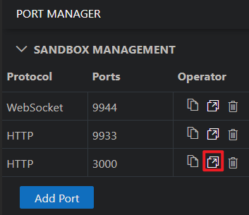 ChainIDE Sandbox makes it easier to develop full-stack dApps by providing powerful features such as port-forwarding. To build the frontend for Astar dApps, you can utilize the magink-dApp template (ref: https://github.com/inkdevhub/magink-dapp) inside ChainIDE and build and test the frontend alongside smart contracts. Follow the below steps to set up the port manager to access the frontend.