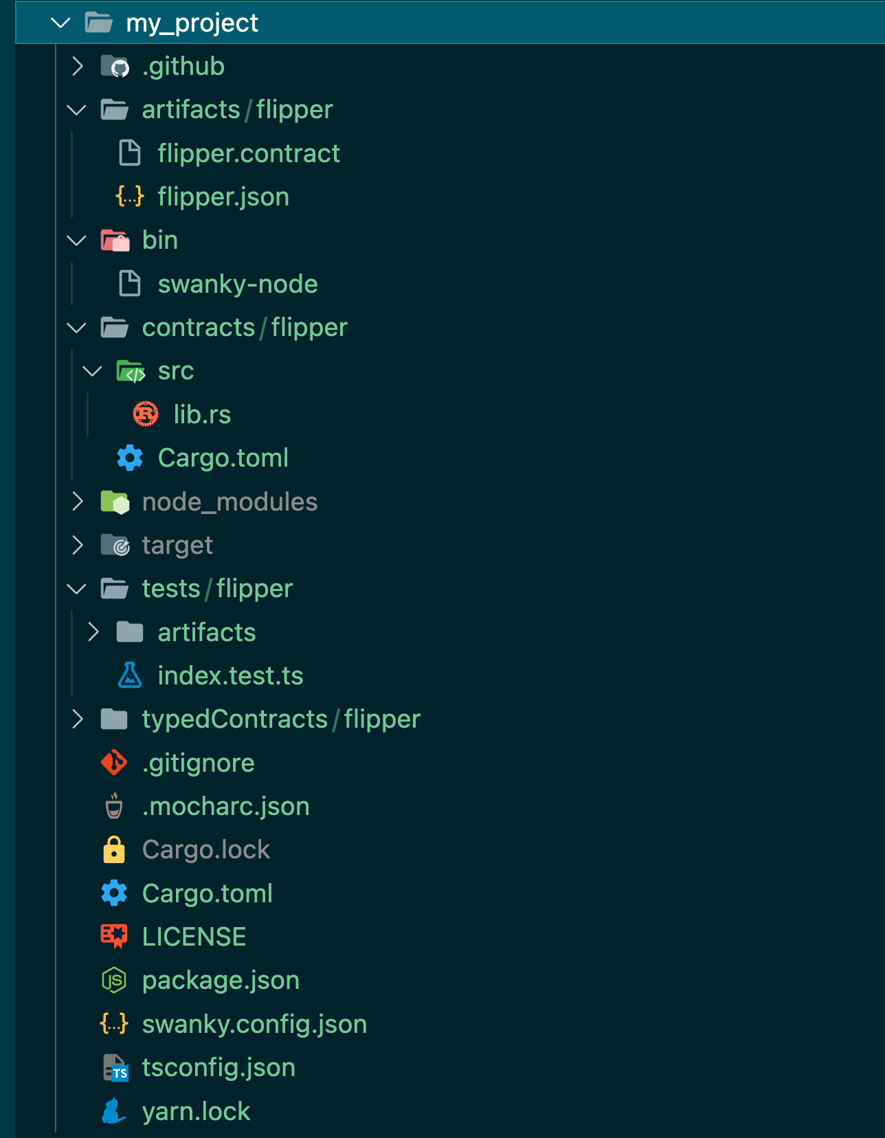 The contract will be referred by name when using the relevant contract commands, and you can check the details in swanky.config.json
