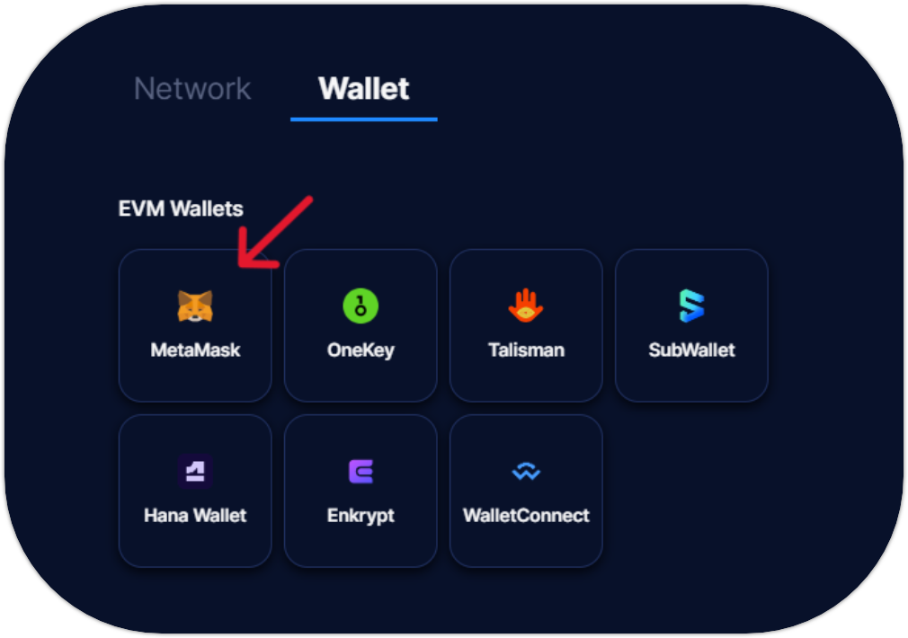 Open MetaMask and connect the account with DOT. Make sure you are connected to the Astar Network. If not, you will find the Network Details in the Integration section.