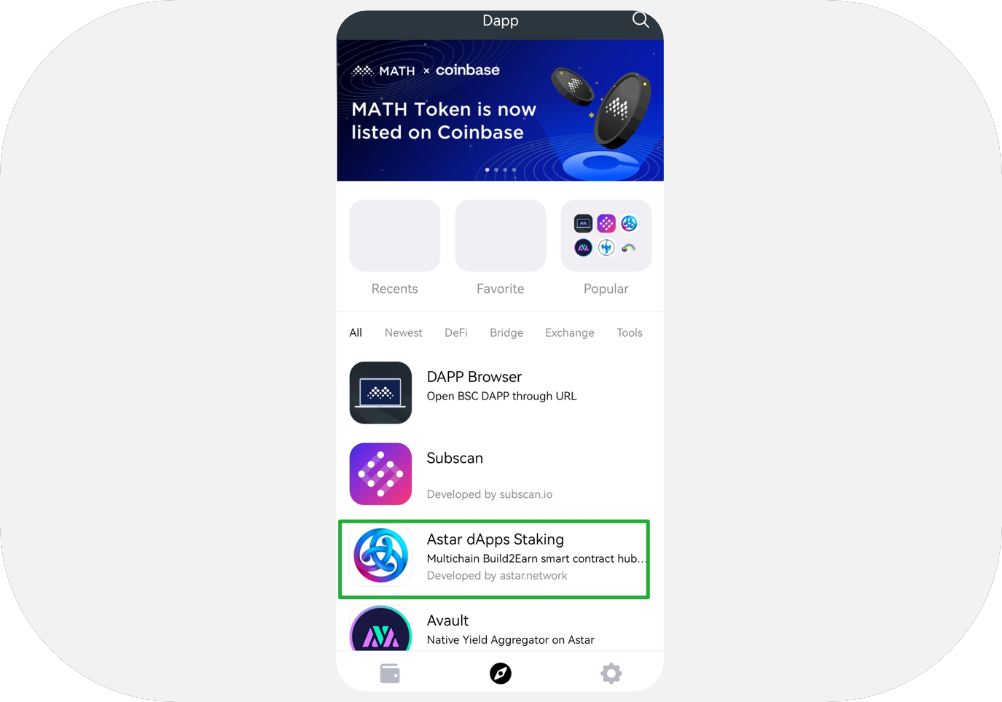 Math Wallet is also available on Astar EVM, you can use it to navigate the dApps within the EVM environment.