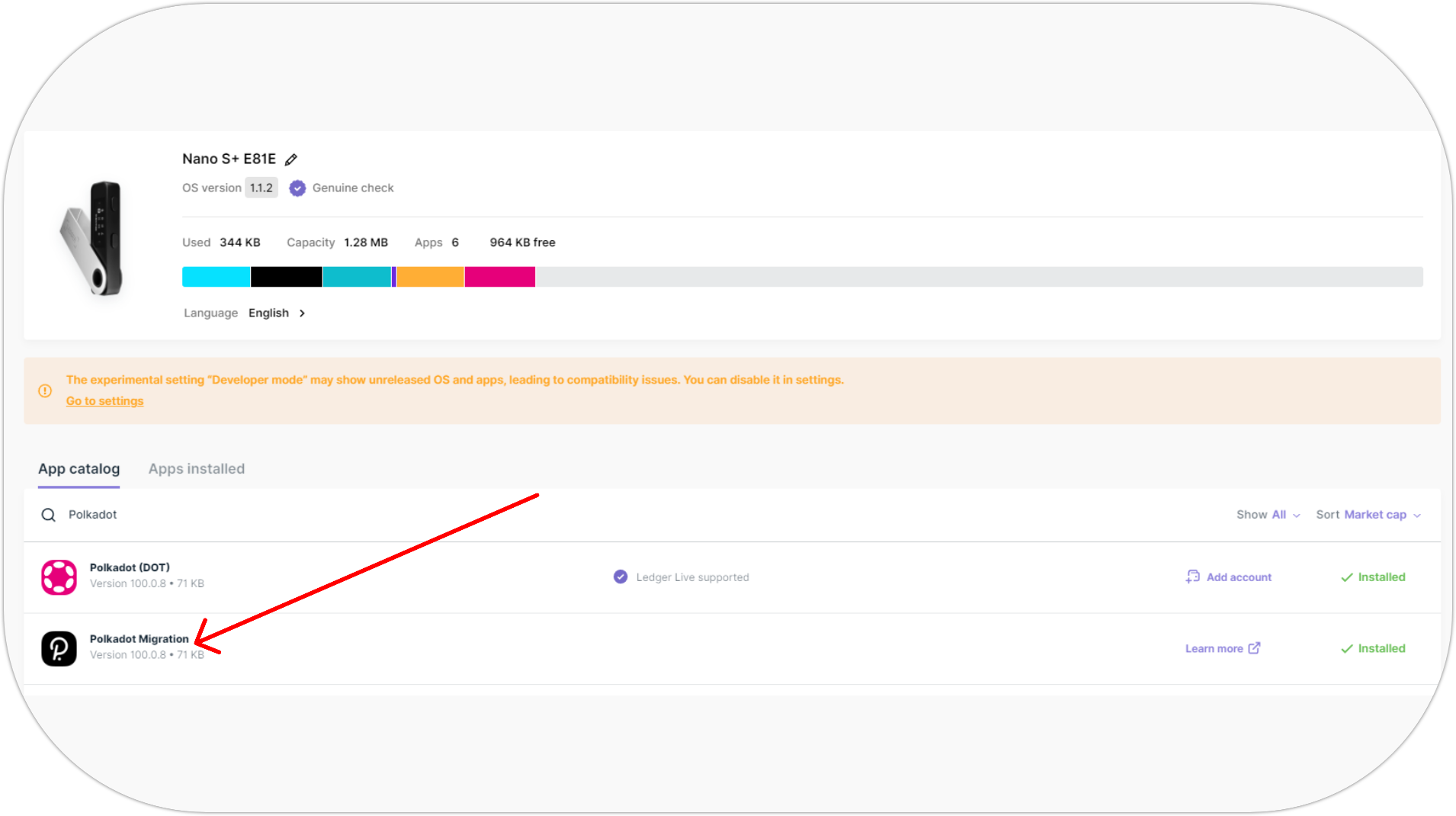 My Ledgerto access your device; - Search for Polkadot Migration (Version