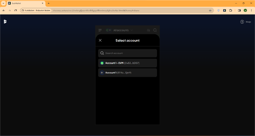 If you want to connect your Ethereum account, choose SubWallet under the Ethereum accounts section.