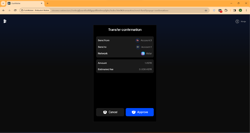 On the next screen, you can review the transaction details and submit the transaction. If the transaction details look good, you can click Approve to send the transaction.