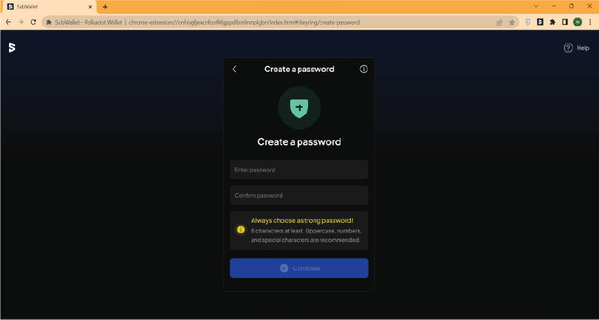 Please note that SubWallet is non-custodial, so you would be the only person who knows your password; we cannot help you restore your password once it is lost. Please make sure that your password is well-kept.