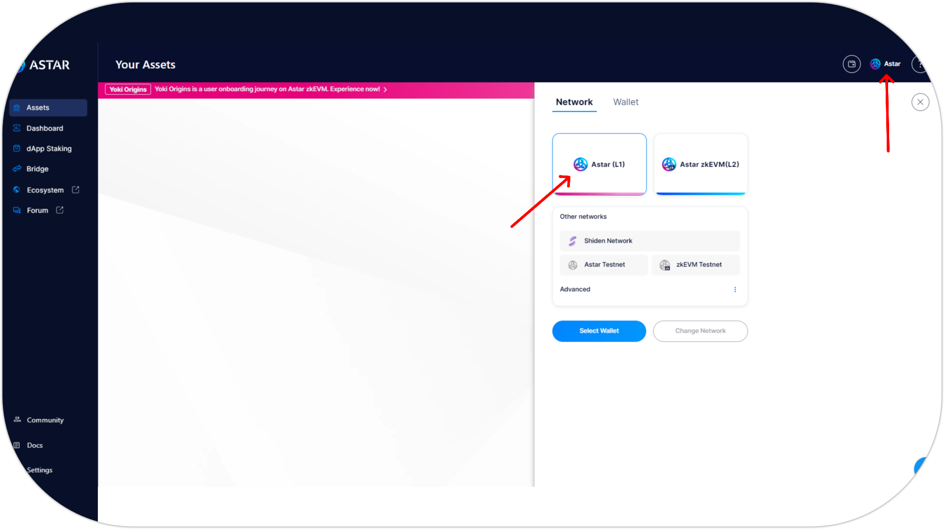 Visit the Astar Portal and select Astar L1;
