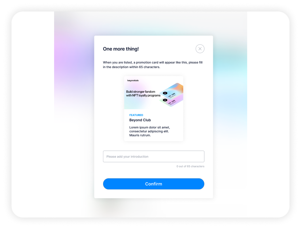 Once you've filled in all your details, click Next button and enter the description that will appear on your New Listing Card;