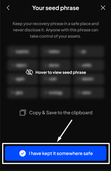 - Keep your recovery phrase (also known as seed phrase or secret phrase) in a safe place;